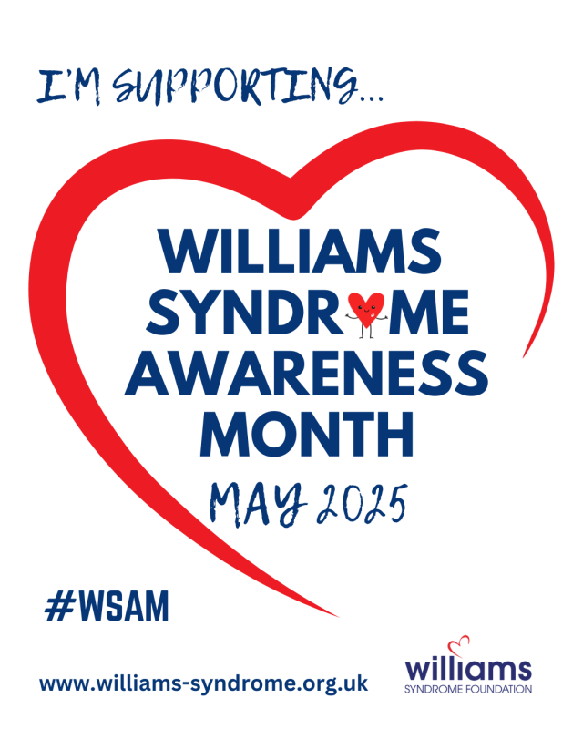 - May is Williams Syndrome awareness month and I’ll be doing xxx to raise awareness.